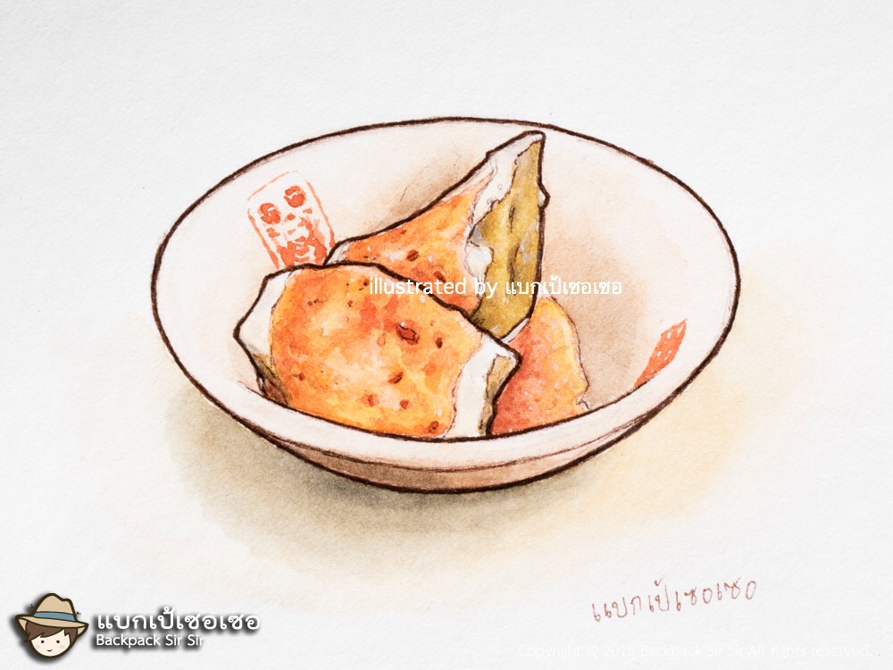 ภาพวาด และ ภาพถ่าย เต้าหู้ทอดยัดไส้ (Tofu stuffed with minced meat) ที่ Jiufen old street, ไต้หวัน